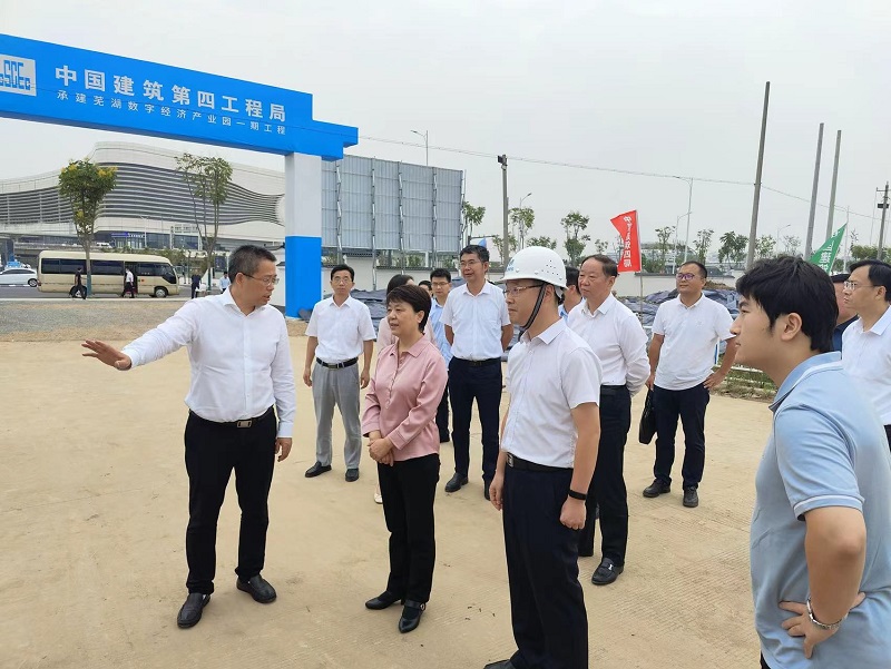 9月1日,副省長王翠鳳,省政府副秘書長左俊,省工商聯(lián)負責同志、省數(shù)字創(chuàng)意產(chǎn)業(yè)專班辦公室(省文化和旅游廳)、省廣電局負責同志、省政府辦公廳工作人員一行,在寧波市長陪同下到正在建設中的蕪湖數(shù)字經(jīng)濟產(chǎn)業(yè)園項目走訪,實地調研項目建設進展情況,鼓勵項目建設單位加大力度,加快進度,確保如期完工,為實現(xiàn)數(shù)字經(jīng)濟產(chǎn)業(yè)高質量發(fā)展提供有力支撐。