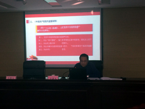 講座的內(nèi)容立足全面從嚴(yán)治黨,堅持將紀(jì)律挺在前面的要求,圍繞黨的紀(jì)律特別是政治紀(jì)律,對《中國共產(chǎn)黨廉潔自律準(zhǔn)則》、《中國共產(chǎn)黨紀(jì)律處分條例》以及《中國共產(chǎn)黨黨內(nèi)監(jiān)督條例》進(jìn)行了解讀和分析,內(nèi)容充實、條理清晰、重點突出。講座圍繞黨員、干部在工作生活中容易觸碰的“雷區(qū)”,還列舉了“禮尚往來不能這樣來”,“6類飯局不能去”、 “如何操辦紅白喜事””等具體問題的表現(xiàn)形態(tài),結(jié)合市紀(jì)委近年來查處的一些黨員違法違規(guī)的案件,提醒廣大干部員工要防微杜漸,時刻保持清醒的頭腦,不能觸碰紀(jì)律紅線。