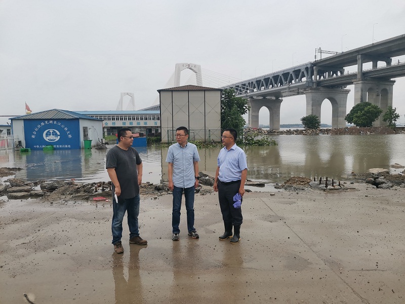 沿著長江防洪大堤,方曉同志一邊檢查一邊聽取項目施工單位防汛工作匯報。目前,施工單位中鐵大橋局項目人員已有序撤離危險區(qū)域、工程資料已經妥善安置,并與屬地政府、所在街道組成防汛值班隊伍,安排人員24小時現(xiàn)場值班,并組建了一支50人的突擊分隊隨時應對突發(fā)險情。