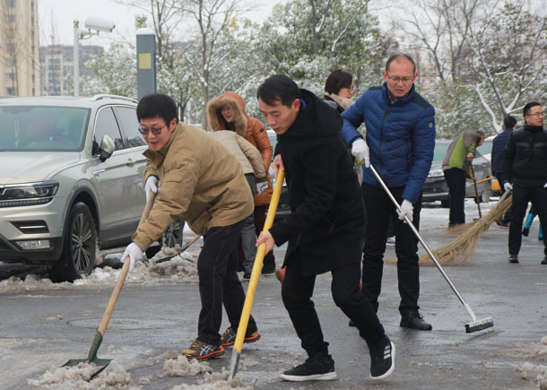 近日蕪湖市普降暴雪,給人民的出行造成諸多不便,帶來極大安全隱患。我公司積極響應(yīng)市委、市政府的號召,于1月26日牽頭召集金融服務(wù)區(qū)進(jìn)駐單位建投公司、宜居公司、交投公司、民強(qiáng)公司、大橋公司、浦發(fā)銀行、農(nóng)發(fā)行、國元農(nóng)保、光大銀行、奇瑞徽銀及大華事務(wù)所等十余家單位,傳達(dá)市文明辦《關(guān)于立即組織人員掃雪除冰的緊急通知》,并對園區(qū)道路進(jìn)行責(zé)任區(qū)劃分,約定統(tǒng)一行動。