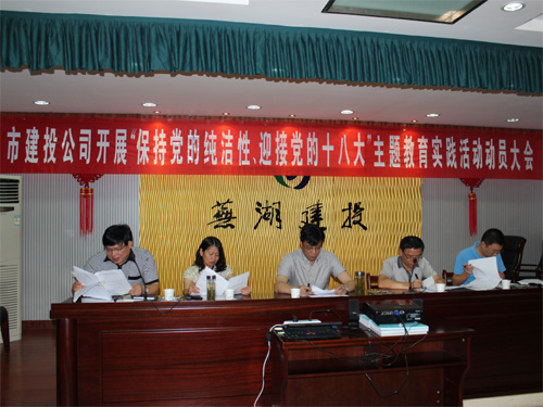 根據(jù)市委統(tǒng)一部署,公司于7月5日召開(kāi)“保持黨的純潔性、迎接黨的十八大”主題教育實(shí)踐活動(dòng)動(dòng)員大會(huì),公司全體黨員參加了會(huì)議。會(huì)議由公司副總經(jīng)理朱毅主持,公司紀(jì)檢組長(zhǎng)汪學(xué)德向全體黨員傳達(dá)了市委相關(guān)文件精神,公司副總經(jīng)理方曉向全體黨員通報(bào)了公司主題教育實(shí)踐活動(dòng)實(shí)施方案,公司副總經(jīng)理湯高繼帶領(lǐng)全體黨員學(xué)習(xí)了胡錦濤總書(shū)記在慶祝建黨九十周年上的講話(huà)、在十七屆中央紀(jì)委第七次全會(huì)上的講話(huà)及張寶順在省第九次黨代會(huì)上的工作報(bào)告等資料。全體黨員觀看了專(zhuān)題電教片《永葆黨的純潔性》等。