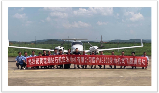 2020年8月5日16時(shí)18分,由公司投資的蕪湖鉆石航空發(fā)動(dòng)機(jī)有限公司生產(chǎn)的AE300發(fā)動(dòng)機(jī)搭載中電科鉆石雙發(fā)四座飛機(jī)平穩(wěn)著陸,標(biāo)志著國(guó)產(chǎn)AE300發(fā)動(dòng)機(jī)試飛驗(yàn)證工作圓滿成功。