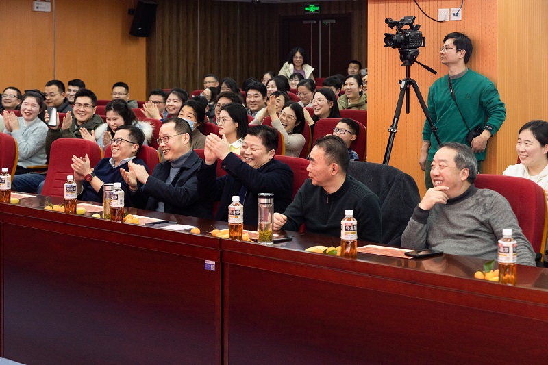 年會表演在熱情洋溢的《歌舞青春 暢想未來》節(jié)目中拉開帷幕,《歌曲串燒》《迎龍回首話今歲》《新地理圖》《克羅地亞狂想曲》《玫瑰人生》《碰頭會》《相親相愛》等包括歌舞、三句半、相聲、電子琴、情景劇在內(nèi)的不同形式的節(jié)目輪番上演,精彩紛呈、好評如潮,贏得了現(xiàn)場觀眾的陣陣掌聲。表演過程中,穿插在節(jié)目中間一輪又一輪的《猜歌曲》《你比我猜》《搶板凳》等互動游戲將年會現(xiàn)場氣氛推向高潮,讓全場人員驚喜不斷、歡笑連連,整個活動充滿著歡快祥和的濃厚氛圍。